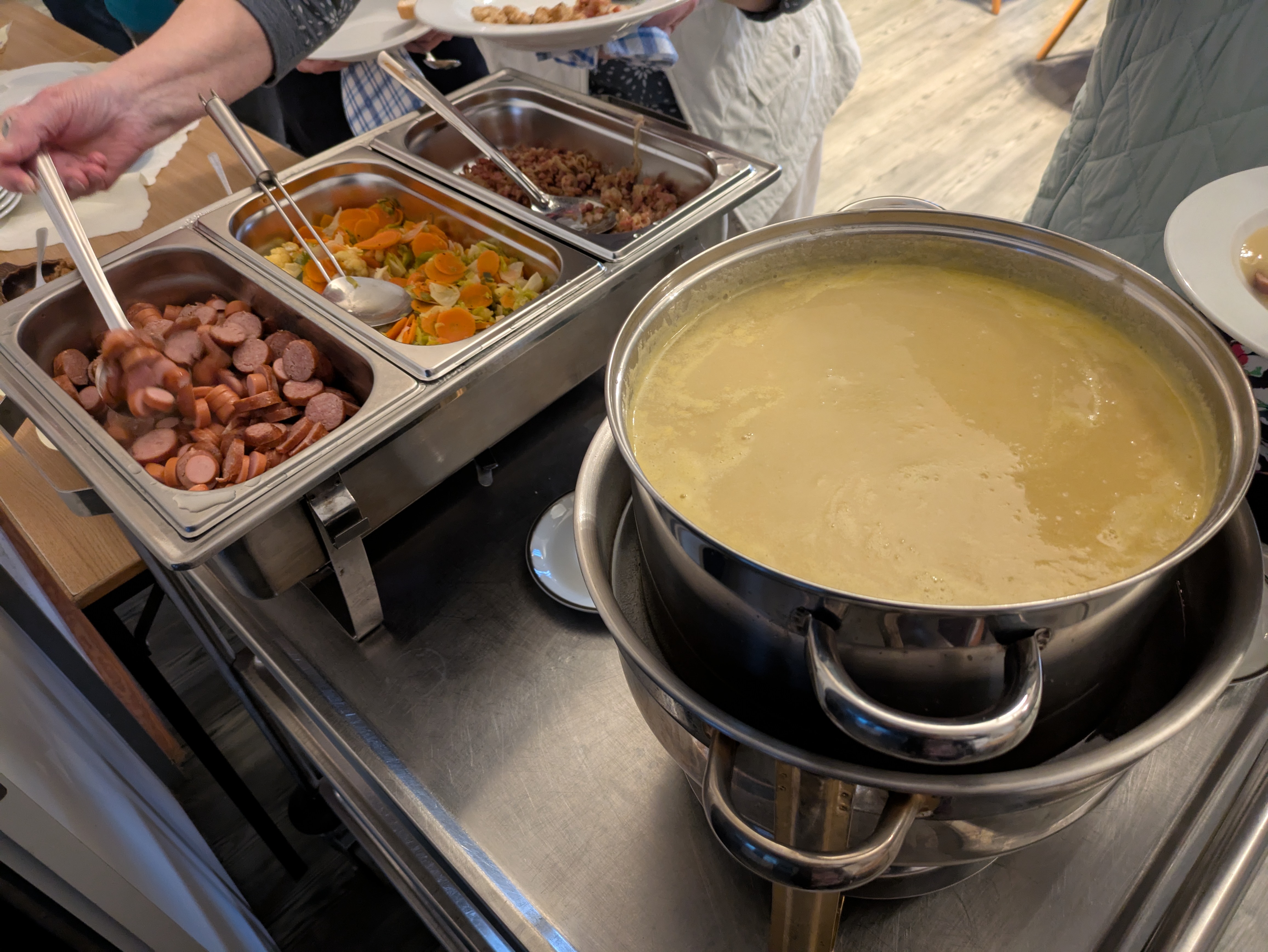 Ganz unterschiedliche Antworten hatten die Frauen sofort parat. In den Tischgruppen wurde aber auch über Heimatküche diskutier. Von den Thüringer Bratwürsten über bayrische Weißwurst bis hin zu sächsischen Quarkkeulchen war alles dabei. Für die Teilnehmenden gab es an diesem Abend westfälische Kartoffelsuppe, gekocht von Annette Wortmann, Landfrau aus Methler.