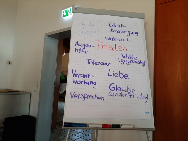 Zum Ende bittet Frau Belthle-Drury die Anwesenden einen Satz mit 6 Wörtern zu bilden.“ Frieden und Freiheit - das höchste Gut“ oder „Wer nicht kämpft, hat schon verloren“ lauteten einige der genannten Sätze.